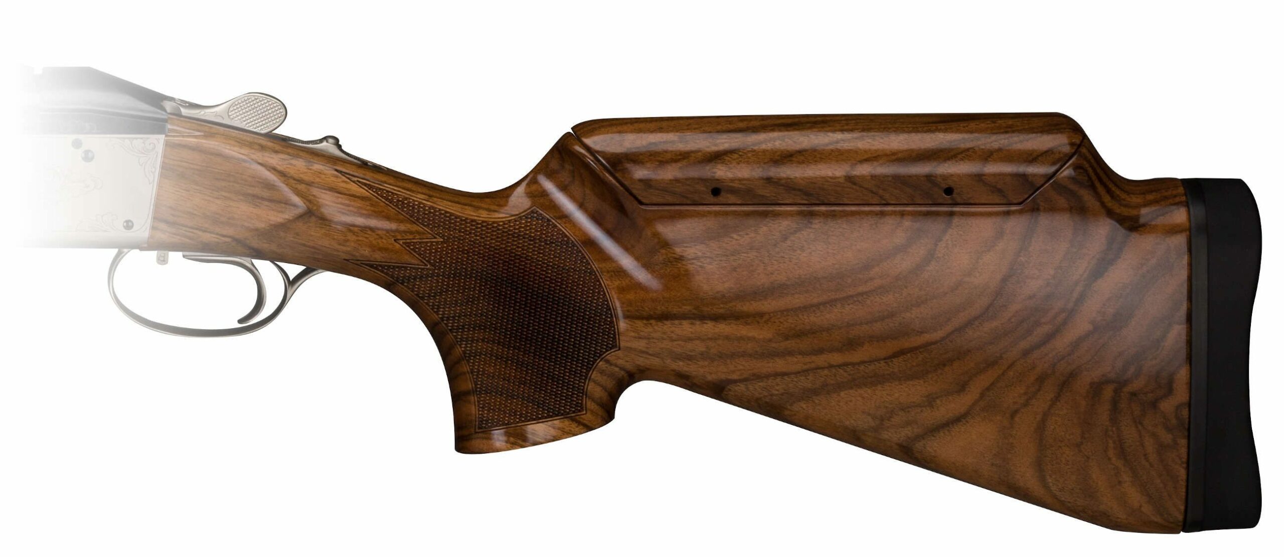 The Trap Special buttstock accommodates the higher rib height of the Trap Special and Pro Trap barrel ribs, and has a rollover parallel comb to bring the eye in line with the higher rib. It took many years and influence from some very prominent shooters such as Harlan Cambell Jr and Kaye Ohye to develop this stock. Krieghoff's intention was to have a factory stock that fits and feels to the majority of the shooters, like a custom stock without having to go through the process of purchasing a custom stock. With the adjust-ability of the factory Krieghoff comb and optional adjustable butt plate, the fitting options of this stock are almost endless.